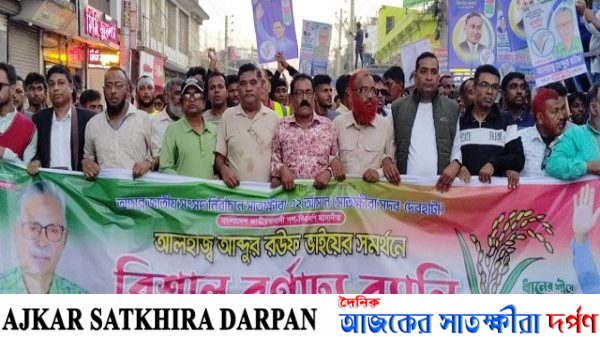 সাতক্ষীরায় ধানের শীষ প্রতীকের প্রার্থী আলহাজ্ব আব্দুর রউফ-এর সমর্থনে বর্ণাঢ্য র্যালি