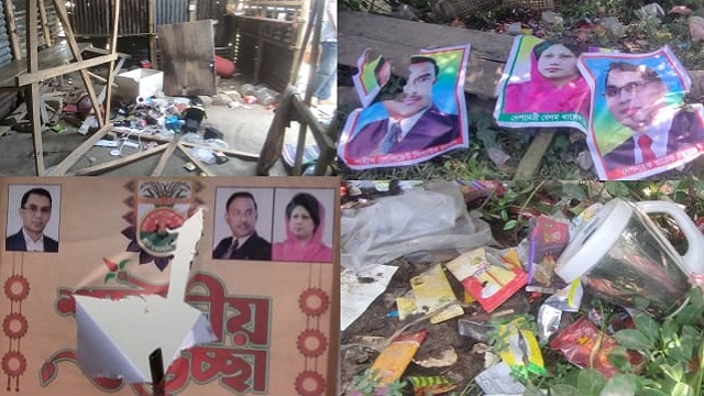 আশাশুনি প্রতিনিধি: আশাশুনি উপজেলার শোভনালী ইউনিয়নে ৭নং খলিসানী ওয়ার্ড বিএনপি অফিস ভাংচুর ও লুটপাট করা হয়েছে। ওয়ার্ড বিএনপির সভাপতি এমরান হোসেন জানান, শনিবার রাতে তারা অফিস বন্ধ করে বাড়িতে যান। রবিবার ভোর রাতে ফজরের নামাজ পড়তে যাওয়ার সময় স্থানীয় জামে মসজিদ কমিটির সভাপতি তাসকিন গাইন ও মুসল্লি আবু সাইদ গাজী দেখতে পান বিএনপি অফিস ভাংচুর করা। খবর দিলে ওয়ার্ড বিএনপি সভাপতি (তিনি) সহ অন্যরা ঘটনাস্থলে গিয়ে দেখেন, অফিসের এ্যাডবেস্টার টিন, কেরাম বোর্ড, টেবিল-বেঞ্চ, দলীয় পতাকা, শহীদ জিয়ার ডিজিটাল ব্যানার, খালেদা জিয়া ও তারেক রহমানের ছবি ভাংচুর করা এবং অফিসের ৩২ ইঞ্চি স্মার্ট টিভি ও অন্যান্য সরঞ্জাম লুট করে নিয়ে গেছে। ক্ষয়ক্ষতির পরিমান অনুমান ৭০ হাজার টাকা। রবিবার সকালে শোভনালী ইউনিয়ন বিএনপির আহবায়ক আহসান হাবিব, সদস্য সচিব জুলফিকর আলী ভুট্টো, সিনিয়র যুগ্ম আহবায়ক মোস্তাফিজুর রহমান মোস্তাক ঘটনাস্থান পরিদর্শন করেছেন। খবর পেয়ে পুলিশ ঘটনাস্থান পরিদর্শন করেছে।