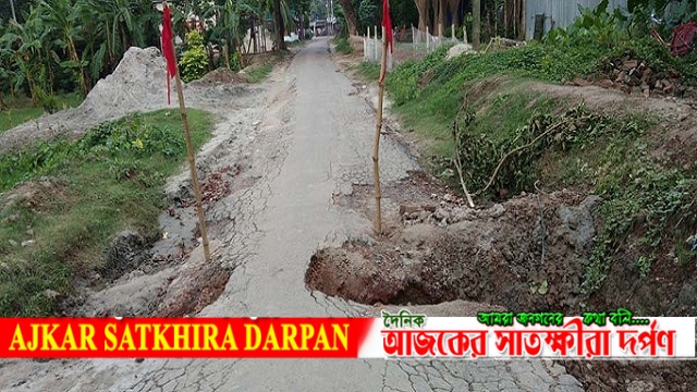 বিশেষ প্রতিনিধি: কলারোয়া-সোনাবাড়িয়া-চন্দনপুর প্রধান সড়কটি চলাচলের অযোগ্য হয়ে পড়েছে। কলারোয়া সীমান্ত অভিমুখী ভাঙনকবলিত এ সড়কের বিভিন্ন স্থান গর্ত, খানা-খন্দে ভরা। বর্ষা মৌসুমের আগে প্রশস্তকরণের নামে সড়কের দুই পাশ কেটে দীর্ঘদিন ফেলে রাখায় চলতি বর্ষায় তা ভাঙতে শুরু করে। দীর্ঘসময় ধরে থেমে থেমে চলছে কেটে ফেলা গর্ত ভরাটের কাজ। গত শুক্রবার থেকে নতুন করে সোনাবাড়িয়া ঈদগাহ সংলগ্ন সড়কটি দুইপাশে ভেঙে গভীর গর্ত হয়ে গেছে। সড়কের এই অংশটি পাইপ কালভার্টের ওপর নির্মিত ছিলো। ভারী বৃষ্টিতে তা ভাঙতে ভাঙতে গভীর গর্তে রূপ নিয়েছে। ফলে সড়কের এই অংশে বন্ধ হয়ে গেছে সকল যানবাহন চলাচল। কেবলমাত্র পথচারী, বাইসাইকেল ও মোটরসাইকেল ঝুঁকির মধ্য দিয়ে চলাচল করছে। গত ৪ দিন সোনাবাড়িয়া ও চন্দনপুরের সড়ক যোগাযোগ ব্যবস্থা সম্পূর্ণভাবে ব্যাহত হচ্ছে। আজ সোমবার সকালে সরেজমিনে এই ব্যস্ততম সড়ক ঘুরে দেখা ঝাঁপাঘাট বাঁশতলা নামক স্থান থেকে থেকে শুরু করে ঝাঁপাঘাট সরকারি প্রাইমারি স্কুল হয়ে গাবতলা মোড় পর্যন্ত প্রায় দেড় কিলোমিটার সড়ক ভেঙে-চুরে খানা-খন্দে ভরে গেছে। যানবাহন চলাচল ব্যাহত হচ্ছে প্রতিনিয়ত। মানুষের অবর্ণনীয় দুর্ভোগের পাশাপাশি কালক্ষেপণ হচ্ছে গন্তব্যে পৌঁছতে।