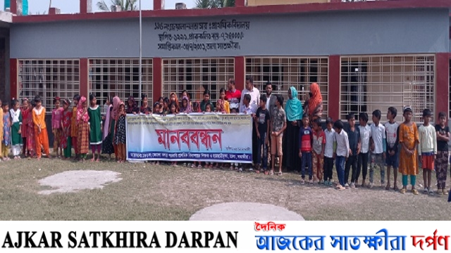তালায় শিক্ষকের নামে মিথ্যা মামলার প্রতিবাদে শিক্ষক ও শিক্ষার্থীদের মানববন্ধন