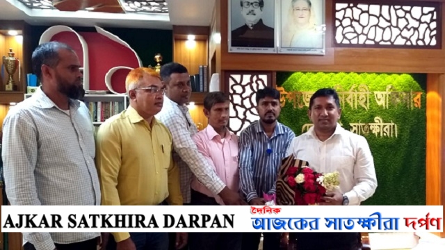 দেবহাটার নবাগত ইউএনও কে ইউপি সচিবদের ফুলেল শুভেচ্ছা
