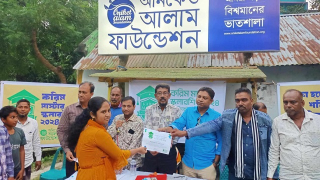 কে এম রেজাউল করিম দেবহাটা: দেবহাটার ভাতশালাস্থ স্বেচ্ছাসেবী প্রতিষ্ঠান অনিকেত আলাম ফাউন্ডেশনের আয়োজনে করিম মাস্টার স্কলারশিপ প্রদান অনুষ্ঠান অনুষ্ঠিত হয়েছে। বুধবার ২০ নভেম্বর বিকাল ৪টায় ভাতশালাস্থ প্রতিষ্টানটির নিজস্ব অফিস চত্বরে মেধাবী শিক্ষার্থীদের অংশগ্রহণে এই অনুষ্ঠানটি অনুষ্ঠিত হয়। টাউনশ্রীপুর শরচ্চন্দ্র উচ্চ বিদ্যালয়ের সাবেক প্রধান শিক্ষক বিশিষ্ট শিক্ষাবীদ প্রয়াত আব্দুল করিমের নামে এই স্কলারশিপ প্রদান অনুষ্ঠানে সভাপতিত্ব করেন অনিকেত আলাম ফাউন্ডেশনের পরিচালক আলমগীর হোসেন। প্রধান অতিথি ছিলেন দেবহাটা সদর ইউপি চেয়ারম্যান আব্দুল মতিন বকুল। বিশেষ অতিথি ছিলেন যথাক্রমে সাবেক শিক্ষক আব্দুল হাই, দেবহাটা রিপোর্টার্স ক্লাবের সভাপতি আর.কে.বাপ্পা, সিনিয়র সহ-সভাপতি মেহেদী হাসান কাজল, সাংগঠনিক সম্পাদক কে এম রেজাউল করিম, ইউপি সদস্য আব্দুল জলিল, টাউনশ্রীপুর শরচ্চন্দ্র উচ্চ বিদ্যালয়ের সহকারী প্রধান শিক্ষক সঞ্জীব ব্যানার্জি, সহকারী শিক্ষক শাহজাহান আলী, দেবহাটা মডেল সরকারী প্রাথমিক বিদ্যালয়ের সহকারী শিক্ষক হযরত আলী প্রমুখ। অনুষ্ঠানে স্থানীয় গন্যমান্য ব্যক্তিবর্গ ছাড়াও বিভিন্ন সরকারী প্রাথমিক বিদ্যালয় ও হাইস্কুলের শিক্ষার্থীরা উপস্থিত ছিলেন। শেষে প্রাথমিক বিদ্যালয় ও হাইস্কুলের মধ্যে থেকে মেধাবী ৪০জন শিক্ষার্থীদেরকে করিম মাস্টার স্কলারশিপের সার্টিফিকেট ও শিক্ষা সহায়তায় অর্থ প্রদান করা হয়।