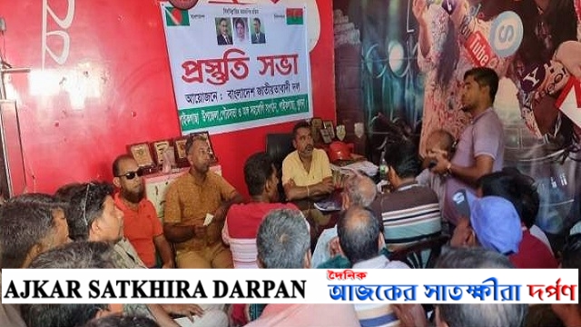 কাজী সোহাগ স্টাফ রিপোর্টার: আগামী ৯ ও ১৪ তারিখ খুলনায় কর্মসূচি এবং ১৮ তারিখ ঢাকায় কর্মসূচি সফল করার লক্ষ্যে পাইকগাছা উপজেলা ও পৌরসভা বিএনপি সহ সকল অঙ্গ সহযোগী সংগঠনের প্রস্তুতি সভা পাইকগাছা উপজেলা বিএনপির সিনিয়র সহ সভাপতি আসলাম পারভেজ সভাপতিত্বে পৌরসভা বিএনপির সাবেক সফল ১ম যুগ্ম আহ্বায়ক কাউন্সিলর এস এম এমদাদুল হক এর পরিচালনায় প্রধান অতিথি হিসেবে বক্তব্য রাখেন পাইকগাছা উপজেলা বিএনপির সাধারণ সম্পাদক এস, এম, এনামুল হক উপস্থিত ছিলেন প্রবীন বিএনপি নেতা শেখ সাদেকুজ্জামান, শেখ বেনজীর আহম্মেদ লাল, জিয়াউদ্দিন নায়েব, ডাঃ সাহাবুদ্দিন, মিজান জোয়াদ্দার, সুজিৎ কুমার, আমিনুল সরদার, সজ্জাত আহম্মেদ মানিক, সাইফুল ইসলাম তারিক, মাসুদ পারভেজ, লিপটন, হাবিবুর রহমান, শেখ আবদুল কাদের, আঃ সাত্তার, আঃ হাকিম, সন্তোষ কুমার মণ্ডল, ইব্রাহীম গাজী, হানিফ গাজী, বিল্লাল শেখ, জাহিদুর রহমান লিটন, যজ্ঞেশ্বর কার্তিক, আনারুল ইসলাম, মোঃ সোহেল গাজী, সাদ্দাম হোসেন, নজরুল ইসলাম, মোঃ সবুজ, জুয়েল সরদার, ইসরাফ্রিল মোড়ল, মাছুদ গাজী, আলাউদ্দিন মোড়ল, রাজীব নেওয়াজ, শামীম জোয়াদ্দ, শংকর গাইন, আমানুল সরদার, বুলবুল, লোকমান, মাফুজ গাজী সালমান, আশিক, রানা, আলিম, শফিকুল, প্রমুখ ।