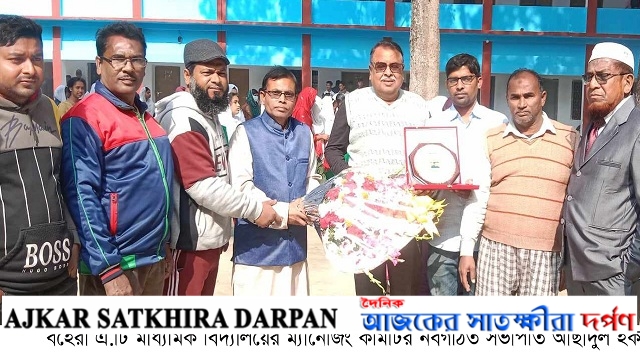বিশেষ প্রতিনিধি:: দেবহাটা উপজেলা কুলিয়া ইউনিয়নের বহেরা আজিজুল তছিমুদ্দিন মাধ্যমিক বিদ্যালয়ে বার্ষিক পরিক্ষার ফল প্রকাশ ও বিদ্যালয়ের নবগঠিত ম্যানেজিং কমিটির সভাপতি আছাদুল হককে সংবর্ধনা প্রদান করা হয়েছে। রবিবার (৩১ডিসেম্বর) বেলা ১১টায় বিদ্যালয়ের হল রুমে বার্ষিক পরীক্ষার ফল প্রকাশ ও সংবর্ধনা অনুষ্ঠান অনুষ্ঠিত হয়। বিদ্যালয়ের প্রধান শিক্ষক (ভারপ্রাপ্ত) সেলিমুজ্জামানের সভাপতিত্বে অনুষ্ঠানে নবগঠিত ম্যানেজিং কমিটির সভাপতি চেয়ারম্যান আছাদুল হককে ক্রেস ও ফুলের শুভেচ্ছা প্রদান করা হয়। অত্র বিদ্যালয়ের সহকারী শিক্ষক তপন কুমার বাইন এর সঞ্চালনায় অনুষ্ঠানে শুভেচ্ছা বক্তব্য রাখেন প্রধান শিক্ষক (ভারপ্রাপ্ত) সেলিমুজ্জামান। প্রধান অতিথির বক্তব্য রাখেন সাতক্ষীরা জেলা আওয়ামলীগের সহ-সভাপতি, কুলিয়া ইউপি চেয়ারম্যান ও বহেরা এ.টি মাধ্যমিক বিদ্যালয়ের নবগঠিত ম্যানেজিং কমিটির সভাপতি আছাদুল হক। বিশেষ অতিথির বক্তব্য রাখেন বিদ্যালয়ের প্রধান শিক্ষক আলিমুর রহমান, সাবেক প্রধান শিক্ষক ইমাদুল হক, সহকারী প্রধান শিক্ষক জাহাঙ্গীর কবির, উপজেলা আওয়ামীলিগের সদস্য আযহারুল ইসলাম ও ইউপি সদস্য আব্দুল হান্নান। এসময় আরোও বক্তব্য রাখেন, ক্রীড়া শিক্ষক রফিক-উল ইসলাম খান, শিক্ষক প্রতিনিধি রুবেল আহমেদ। এসময় উপস্থিত ছিলেন, অভিভাবক সদস্য আনছারুল আম্বিয়া, সংরক্ষিত মহিলা অভিভাবক সদস্য শাহানাজ পারভীন, শিক্ষক প্রতিনিধি ওমর ফারুক ও সংরক্ষিত মহিলা শিক্ষক প্রতিনিধি জ্যোতি রানী সরকার প্রমুখ।