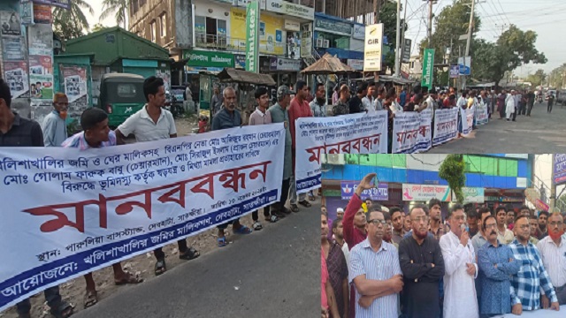 কে এম রেজাউল করিম দেবহাটা: দেবহাটার পারুলিয়ায় বিএনপি নেতাদের নামে মিথ্যা বানোয়াট মামলা প্রত্যাহারের দাবীতে মানববন্ধন ও প্রতিবাদ সমাবেশ অনুষ্ঠিত হয়েছে। সম্প্রতি সেনাবাহিনীর নেতৃত্বে অস্ত্র বিরোধী অভিযানের সময় দেবহাটার খলিশাখালী ভূমিহীন জনপদে গনপিটুনিতে কামরুল ইসলাম নামে একজন মারা যায়। এঘটনার পরে নিহত কামরুলের স্ত্রী বাদী হয়ে দেবহাটা থানায় দেবহাটা উপজেলা বিএনপির আহবায়ক সাবেক চেয়ারম্যান শেখ সিরাজুল ইসলাম, দেবহাটা উপজেলা বিএনপির সাবেক সাধারন সম্পাদক ও বর্তমান পারুলিয়া ইউপি চেয়ারম্যান গোলাম ফারুক বাবু, নলতা ইউনিয়নের চেয়ারম্যান বিএনপি নেতা আজিজুর রহমানসহ কয়েকজন বিএনপি নেতাদের নামে মিথ্যা ও বানোয়াট মামলা দায়ের করে। যার কারনে দেবহাটা ও কালীগঞ্জ বিএনপির আয়োজনে বুধবার বিকাল ৩টায় পারুলিয়া বাসস্ট্যান্ড চত্বরে এক প্রতিবাদ সমাবেশ ও মানববন্ধন কর্মসূচী অনুষ্ঠিত হয়। উক্ত মানববন্ধন ও প্রতিবাদ সমাবেশে প্রধান অতিথি ছিলেন সাতক্ষীরা জেলা বিএনপির যুগ্ম আহবায়ক শেখ তারিকুল হাসান। সমাবেশে অন্যান্যের মধ্যে বক্তব্য রাখেন সাতক্ষীরা জেলা যুবদলের সাবেক সভাপতি আবুল হাসান হাদী, সাবেক জেলা যুবদলের নেতা সাবেক কাউন্সিলর আইনুল ইসলাম নান্টা, সাতক্ষীরা পৌর বিএনপির সাধারন সম্পাদক আব্দুল্লাহ আল মামুন রাজু, জেলা কৃষকদলের সাবেক আহবায়ক আহসানুল কাদির স্বপন, সাতক্ষীরা সদর উপজেলা যুবদলের সদস্য সচিব শাহিনুর রহমান, জেলা ছাত্রদলের সাবেক আহবায়ক শরিফুজ্জামান সজিব, সাবেক জেলা ছাত্রদলের সিনিয়র যুগ্ম আহবায়ক মঞ্জুর মোর্শেদ মিলন, সাবেক জেলা ছাত্রদলের সদস্য সচিব মোমতাজুর রহমান চন্দন, সাবেক সাংগঠনিক সম্পাদক আবু রায়হান, বাংলাদেশ প্রতিবাদ কমিটির সভাপতি মহিউদ্দিন আহম্মেদ, দেবহাটা উপজেলা বিএনপির যুগ্ম আহবায়ক গোলাম মোস্তফা, পারুলিয়া ইউনিয়ন বিএনপির সাধারন সম্পাদক রফিকুল ইসলাম সানা, উপজেলা কৃষকদলের সাবেক সভাপতি ইউপি সদস্য মোখলেছুর রহমান, উপজেলা যুবদলের আহবায়ক কামরুজ্জামান কামরুল, যুগ্ম আহবায়ক আহসানুর রহমান রাজিব, উপজেলা ছাত্রদলের আহবায়ক ইমরান ফরহাদ প্রমুখ। উপজেলা স্বেচ্ছাসেবক দলের সিনিয়র যুগ্ম আহবায়ক আহম্মদ আলীর সঞ্চালনায় সমাবেশ ও মানববন্ধনের হাজার হাজার নেতাকর্মী উপস্থিত ছিলেন। এসময় বক্তারা বলেন, বিএনপি নেতাদের নামে এই বৈষম্যমূলক মিথ্যা মামলা অবিলম্বে প্রত্যাহার করে যে সমস্ত ভূমিদস্যুরা এই খলিশাখালী এলাকায় অস্থিতিশীল পরিস্থিতি সৃষ্টি করছে তাদেরকে আসামী করতে হবে। একশ্রেনীর ভূমিদস্যুরা নিজেদের স্বার্থে নিরীহ ভূমিহীনদের ব্যবহার করছে তাদেরকে অবিলম্বে গ্রেফতার করে এই এলাকায় শান্তি স্থাপন করার জন্য নেতৃবৃন্দ প