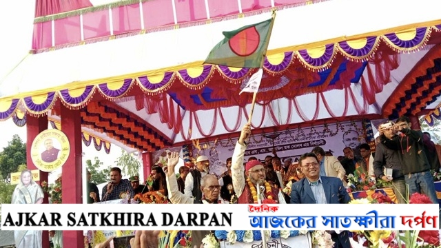 শেখ আব্দুস সালাম শ্যামনগর: বুড়িগালেনী ইউনিয়ন আওয়ামী লীগের পক্ষ থেকে আসন্ন দ্বাদশ জাতীয় সংসদ নির্বাচনকে সামনে রেখে সাতক্ষীরা-৪ আসনে বাংলাদেশ আওয়ামী লীগের মনোনীত নৌকার প্রার্থী এস এম আতাউল হক দোলনের নির্বাচনী জনসভা অনুষ্ঠিত হয়েছে ৷ ৩০ ডিসেম্বর ২০২৩ তারিখ শনিবার বিকাল ৪ টায় কলবাড়ী নেকজানিয়া মাধ্যমিক বিদ্যালয় মাঠ প্রাঙ্গনে এ জনসভা অনুষ্ঠিত হয় ৷ জনসভায় বিভিন্ন ওয়ার্ড থেকে আসা মিছিলে মিছিলে মাঠ কানায় কানায় পূর্ণ হয়ে যায়। জনসভায় প্রধান অতিথি হিসাবে উপস্থিত ছিলেন, নৌকার প্রতিকের মনোনীত প্রার্থী সদ্য সাবেক উপজেলা পরিষদ চেয়ারম্যান এবং উপজেলা আওয়ামীলীগের সাধারণ সম্পাদক এস এম আতাউল হক দোলন ৷ সম্মানিত অতিথি হিসাবে উপস্থিত ছিলেন, সাবেক সংসদ সদস্য, বীর মুক্তিযোদ্ধা ও জেলা আওয়ামী লীগের সভাপতি এ,কে ফজলুল হক ৷ সম্মানিত অতিথি সাতক্ষীরা জেলা আওয়ামী লীগের সাংগঠনিক সম্পাদক ও সাতক্ষীরা-৪ নির্বাচন পরিচালনা কমিটির আহবায়ক জিএম সফিউল আযম লেনিন,জেলা আওয়ামী লীগের শিল্প ও বার্নিজ্য বিষয়ক সম্পাদক ও নির্বাচন পরিচালনা কমিটির সদস্য সচিব শেখ এজাজ আহম্মেদ স্বাপন, জেলা আওয়ামী লীগের বন ও পরিবেশ বিষয়ক সম্পাদক, কাশিমাড়ী ইউনিয়ন পরিষদের চেয়ারম্যান মোঃ আনিছুজ্জামান, বাংলাদেশ আওয়ামী লীগের মহিলা বি. উপকমিটির সদস্য ও সাতক্ষীরা জেলা আওয়ামী লীগের উপদেষ্টা মাসুদা খানম মেধা, কালীগঞ্জ উপজেলা আওয়ামী লীগের সভাপতি মোজাহার হোসেন কান্টু, সাবেক শ্যামনগর উপজেলা আওয়ামীলীগের সাধারণ সম্পাদক এডভোকেট আবুবক্কর সিদ্দিক চেয়ারম্যান ভাইস চেয়ারম্যান নাজমুল আহসান, জাতীয় পার্টির কেন্দ্রীয় কমিটির সদস্য ও জেলা মহিলা জাতীয়পার্টির সভানেত্রী ও উপজেলার কৃষ্ণনগর ইউনিয়নের চেয়ারম্যান সাফিয়া পারভীন, রতনপুর ইউনিয়নের চেয়ারম্যান আলিম আল-রাজী টোকন শ্যামনগর উপজেলা চেয়ারম্যান সাঈদ-উদ-জামান সাঈদ, মহিলা ভাইস চেয়ারম্যান খালেদা আয়ুব ডলি, ও শ্যামনগর সাতক্ষীরা-৪ আসনের বিভিন্ন ইউনিয়ন আওয়ামী লীগের সভাপতি/সাধারণ সম্পাদক সহ বিভিন্ন ইউনিয়নের চেয়ারম্যান এবং নেতাকর্মীরা ৷জনসভায় প্রধান অতিথি তার বক্তব্যে বলেন, বুড়িগোয়ালিনী ইউনিয়নে বিভিন্ন প্রকৃতিক দূর্যোগে প্রায় সময় বেড়িবাঁধ ভেঙে প্লাবিত হয়ে ক্ষয়ক্ষতি হয়ে থাকে ৷ টেকসই বেড়িবাঁধ নির্মানে আমার কঠোর ভূমিকা থাকবে ৷ এই এলাকার জেলে বাওয়ালিদের জীবন ব্যবস্থা উন্নত করতে আগ্রহী ভূমিকা পালন করবো এবং বিভিন্ন প্রজেক্টে মাধ্যমে সরকারি সহায়তায় সহযোগিতা করতে চাই ৷ এ এলাকার মানুষের কর্মসংস্থান বৃদ্ধির প্রধান ভূমিকা থাকবে আমার ৷তাই আসুন দেশে ব্যপক উন্নয়নকে সামনে রেখে আমরা পূনরায় নৌকা প্রতীকে 
