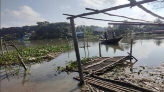 আজকের সাতক্ষীরা দর্পণ ডেস্ক: পাটকেলঘাটা ও যশোরের কেশবপুর উপজেলার মানুষের যাতায়াতের একমাত্র মাধ্যম কপোতাক্ষ নদের উপর অবস্থিত ধানদিয়া-সাগরদাড়ি বাঁশের সাঁকো। যেটি বর্তমানে নদের উপর উজান থেকে ভেসে আসা শেওলার চাপে সাঁকোটি ভেঙে দুই উপজেলার কয়েক লাখ মানুষ নিদারুণ বিপাকে পড়েছে। একই সাথে সংশ্লিষ্ট এলাকার মানুষেরা তাদের প্রয়োজনীয় কর্মসম্পাদনের জন্য নদী পারাপারে চরম দুর্ভোগ পোহাচ্ছেন। জানা যায়, কয়েক মাস পার হলেও সাঁকোটি মেরামতের কোনো ব্যবস্থা করা হয়নি।