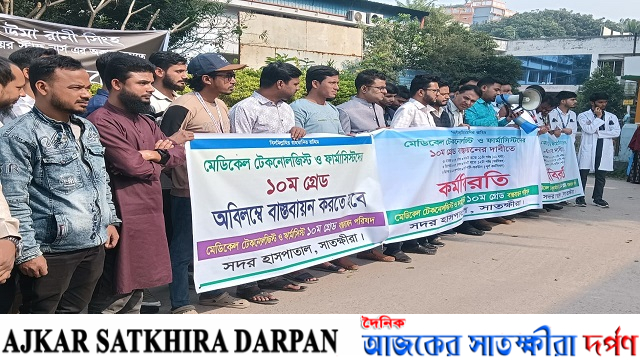 মেডিকেল টেকনোলজিস্ট ও ফার্মাসিস্টদের ১০ম গ্রেড বাস্তবায়নের দাবীতে কর্মবিরতি - আজকের সাতক্ষীরা দর্পণ