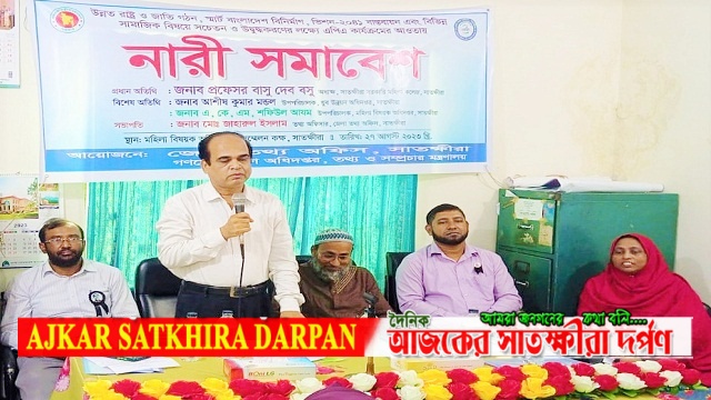 জেলা তথ্য অফিসার মোঃ জাহারুল ইসলামের সভাপতিত্বে নারী সমাবেশ অনুষ্ঠানে প্রধান অতিথি হিসেবে উপস্থিত হয়ে বক্তব্য প্রদান করেন সাতক্ষীরা সরকারি মহিলা কলেজের অধ্যক্ষ প্রফেসর বাসু দেব বসু। বিশেষ অতিথি হিসেবে বক্তব্য প্রদান করেন যুব উন্নয়ন অধিদপ্তরের উপপরিচালক আশীষ কুমার মন্ডল এবং মহিলা বিষয়ক অধিদপ্তরের উপপরিচালক একেএম শফিউল আযম।
