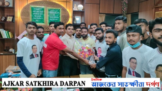 ফারুক হোসেন সোহাগ: বাংলাদেশ জাতীয়তাবাদী ছাত্রদল সাতক্ষীরা শহর শাখার সদস্য সচিব মোঃ শাহিন ইসলাম এর পক্ষ থেকে সাতক্ষীরা সরকারি কলেজ এর প্রিন্সিপাল স্যার কে ফুলের শুভেচ্ছা ও সৌজন্য সাক্ষাৎ করেন। এ সময় উপস্থিত ছিলেন সাতক্ষীরা সরকারি কলেজ ছাত্রদলের যুগ্ন আহবায়ক মাসুদুল আলম (শেখ মাসুদ), সদর থানা ছাত্রদল এর আহবায়ক সদস্য সাইফুল ইসলাম, শহর ছাত্রদল এর যুগ্ম আহবায়ক আব্দুল্লাহ আল আমিন, মিশন মাদ্রাসা ছাত্রদল এর হাফেজ আমিনুর রহমান, ২ নং ওয়ার্ড ছাত্রদল এর সিঃ সহ সভাপতি বিল্লাল হোসেন, আসলাম হুসাইন। ছাত্রনেতা ওমর ফারুক, আবির, লিখন, হাফিজুল ইসলাম, নাঈম, সোহাগ, প্রেম ঘোষ প্রমুখ।