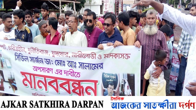সাতক্ষীরার নারীলোভী, মাদকাসক্ত সিভিল সার্জন ডাঃ আব্দুস সালামের অপসারণের দাবিতে মানববন্ধন ও অফিস ঘেরাও - আজকের সাতক্ষীরা দর্পণ