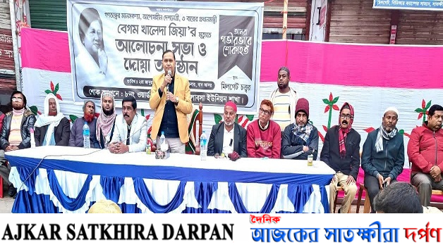 নিজস্ব প্রতিনিধি : দেশনেত্রী ও বিএনপির চেয়ারপারসন বেগম খালেদা জিয়ার মৃত্যুতে ৮ নং বিএনপি লাবসা ইউনিয়ন এর উদ্যোগে আলোচনা সভা ও দোয়া অনুষ্ঠান অনুষ্ঠিত হয়। শুক্রবার বিকালে সাতক্ষীরার মিল বাজারে ওয়ার্ড বিএনপির সভাপতি বিশিষ্ট ব্যবসায়ী শাহজাহান আলীর সভাপতিত্বে দোয়া অনুষ্ঠানে প্রধান অতিথি ছিলেন সাতক্ষীরা জেলা বিএনপির সাবেক সাধারণ সম্পাদক ও সাবেক সদস্য সচিব এবং লাবসা ইউনিয়নের ৭ বারের চেয়ারম্যান আব্দুল আলীম। বিশেষ অতিথি ছিলেন সাতক্ষীরা সদর উপজেলা বিএনপির সাবেক সভাপতি এডভোকেট নুরুল ইসলাম, সদস্য সচিব নুরে আলম সিদ্দিকী, জাতীয়বাদী সাতক্ষীরা আইনজীবী ফোরামের আহবায়ক এডভোকেট আকবর আলী,লাবসা ইউনিয়ন বিএনপির সভাপতি শফিকুল ইসলাম, সাংগঠনিক সম্পাদক রফিকুল ইসলাম ছোট। সোহেল আহমেদ মানিক, বিএনপি নেতা আতিয়ার রহমান, ৮ নং বিএনপির সাধারণ সম্পাদক ইদ্রিস আলী, এসময় উপস্থিত ছিলেন মেম্বার নজিবুর রহমান টুটুল, আমিনুর রহমান রাজু, রফিকুল ইসলাম বিএনপি নেতা, সাধারণ সম্পাদক ওয়ার্ড বিএনপি মনিরুজ্জামান মনি, সাংগঠনিক সম্পাদক মনিরুল ইসলাম মনি। বক্তাগণ বলেন তিন তিন বারের প্রধান মন্ত্রী এবং শহীদ রাষ্ট্রপতি জিয়াউর রহমান এর সহধর্মীনি আজ আমাদের মাঝে নেই কিন্তু উনি বেচে থাকবে কোটি কোটি মানুষের হৃদয়ে। তিনি একজন ভালো মানুষ ছিলেন এবং তিনি ইসলাম ধর্মের প্রতি আনুগত্য ছিলেন শুধু তাই নয় আলেমদের সম্মান ও মর্যাদাবান ব্যাক্তি ছিলেন তাই আল্লাহ্ বেগম খালেদা জিয়া ও শহীদ রাষ্ট্রপতি জিয়াউর রহমানকে জান্নাতুল ফেরদৌস দান করুক। অনুষ্ঠান পরিচালনা করেন রফিকুল ইসলাম রফিক এবং দোয়া ও মোনাজাত পরিচালনা করেন মসজিদ এর পেস ইমাম ও খতিব ইয়াসিন আরাফাত।