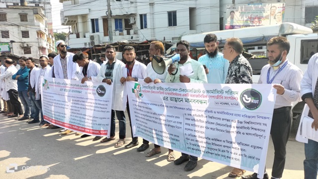 ৩) গ্রাজুয়েট মেডিকেল টেকনোলজিস্ট ও ফার্মাসিস্টদের পদ সৃজন পূর্বক চাকুরীজীবিদের আনুপাতিক হারে পদোন্নতি, স্টান্ডার্ড সেট-আপ এ নিয়োগবিধী ও স্বাস্থ্য সুরক্ষা আইনে অন্তর্ভুক্ত করতে হবে।
