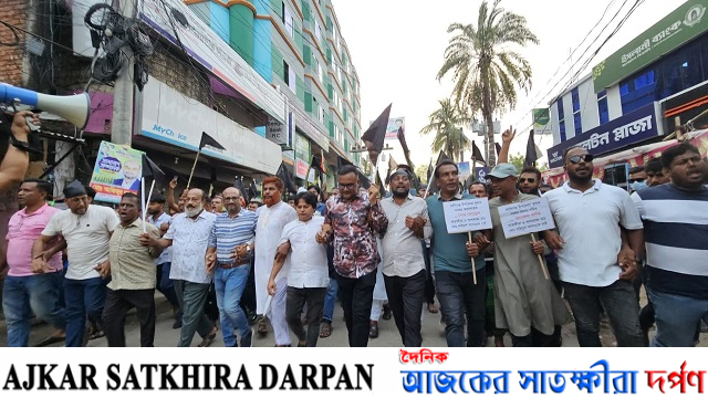 নিজস্ব প্রতিনিধি: সাতক্ষীরা-৩ ( কালিগঞ্জ-আশাশুনি ) আসনে কাজী আলাউদ্দীন এর মনোনয়ন বা তি ল করে বিএনপির জাতীয় নির্বাহী কমিটির সদস্য ‘গরীবের ডাক্তার’ খ্যাত অধ্যাপক শহিদুল আলমকে মনোনয়ন প্রদানের দাবিতে কালিগঞ্জে ৬ নভেম্বর বৃহস্পতিবার বিকাল ৪টায় বিএনপি ও সহযোগী অঙ্গ সংগঠনের বিপুল সংখ্যাক নেতাকর্মী কালো পতাকা হাতে নিয়ে বিক্ষোভ মিছিল করেছে। বিক্ষোভ মিছিল টি ডাকবাংলা মোড় সংলগ্ন উপজেলা বিএনপির কার্যালয় থেকে শুরু করে বিভিন্ন সড়ক প্রদক্ষিণ করে উত্তর কালিগঞ্জ বাস টার্মিনাল সংলগ্ন তারালী চৌ-রাস্তা মোড়ে সমাবেশ অনুষ্ঠিত হয়। এ সময় উপজেলা বিএনপির সাবেক ছাত্র বিষয়ক সম্পাদক ও ইউপি চেয়ারম্যান জাহাঙ্গীর আলম, নলতা ইউপি চেয়ারম্যান আজিজুর রহমান পাড়, জগন্নাথ বিশ্ববিদ্যালয়ের ছাত্রদল নেতা ইব্রাহিম কবির মিঠু, নলতা ইউনিয়ন বিএনপির সভাপতি কিসমাতুল বারী, উপজেলা যুবদলের সদস্য সচিব শেখ আব্দুল আজিজসহ দলটির তৃণমূলের কয়েকজন নেতাকর্মী বক্তব্য রাখেন। বক্তারা বলেন, গণমানুষের নেতা ডাক্তার শহিদুল আলমকে সাতক্ষীরা-৩ আসনে মনোনয়ন না দিয়ে অনেক কম জনপ্রিয় একজনকে বিএনপির মনোনয়ন দেয়া হয়েছে। এটা শুধু দলীয় নেতাকর্মীরা নয়, এ অঞ্চলের মানুষের পক্ষে মেনে নেয়া সম্ভব নয়। কাজী আলাউদ্দীন এর মনোনয়ন বাতিল করে ডা. শহিদুল আলমকে মনোনয়ন দেয়ার দাবি জানিয়ে তারা বলেন, প্রার্থী পরিবর্তন না হওয়া পর্যন্ত হরতাল, অবরোধ, মানব বন্ধন, বিক্ষোভ মিছিল, প্রতিবাদ সমাবেশ, কাফনের কাপড় নিয়ে অনশন কর্মসূচি পালনসহ ধারাবাহিক কর্মসূচি পালন করা হবে। প্রসঙ্গত, সোমবার মনোনয়ন প্রাপ্তদের নাম ঘোষণার পরপরই রাতে বি ক্ষোভ সমাবেশ, মঙ্গলবার সকাল থেকে নলতায় অর্ধ দিবস হরতাল, মহাসড়ক অবরোধ, বিকেলে উপজেলা সদরে বিক্ষোভ মিছিল ও সমাবেশ এবং বুধবার স্মরণকালের সর্ববৃহৎ মানববন্ধন কর্মসূচি পালন করেন দলীয় নেতাকর্মীসহ বিভিন্ন শ্রেণি পেশার মানুষ।